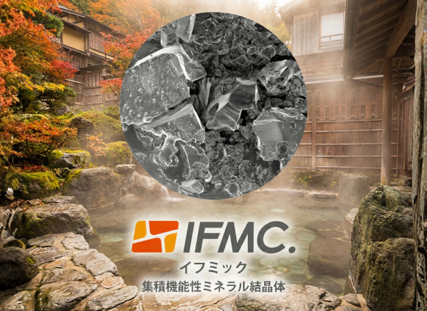 平成29年(2017年)7月6日、ある特定の組み合せで作った溶出液の中から、ナノメーターレベルの微小な結晶体を観察することができました。その溶出液を繊維に加工すれば、皮膚に直接接触させずとも、すぐに皮膚の表面温度が上昇し、血流が増加したり、痛みを除去したり、体幹が強化されたり、歩行が安定したりすることが分かりました。私たちはこの溶出液に含まれている結晶体を、その特徴から「集積機能性ミネラル結晶体(イフミック):Integrated Functional Mineral Crystal」と命名しました。