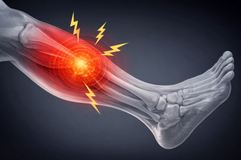 運動中や段差を降りた瞬間に「ブチッ」という衝撃とともに激痛が走った場合は、肉離れの可能性が高いと言えます。これは、ふくらはぎの筋肉(下腿三頭筋)が急激な収縮に耐えきれず、一部が断裂した状態です。また、単なる使いすぎによる筋肉痛であっても、筋繊維に微細な傷がつき、修復過程で発痛物質が出ることで痛みが生じます。これら筋肉由来の痛みは、適切な安静と、回復期における血行促進によって改善を目指すことができます。